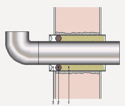 | Selagem impermeabilizante exterior de junta perimetral entre tubo passa-muros e duto de instalações, em parede de fachada | ||