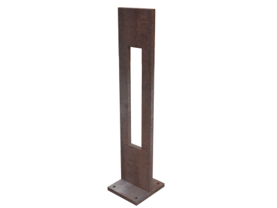 Estacionamento para 2 bicicletas, de chapa de aço corten acabamento granulado silhuetada através de oxicorte, colocação com bucha química, arruela e parafuso. | ||