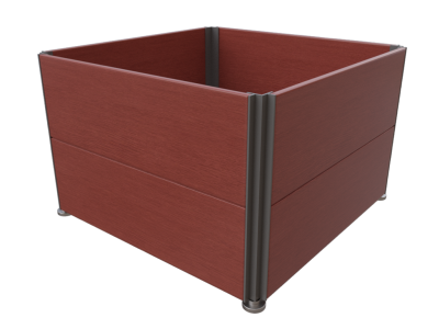 Floreira de 70x70x45 cm, com painéis de resina fenólica de cor castanho e estrutura de perfis de aço com proteção antioxidante e tinta de cor preto. | ||