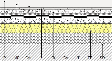 | Cobertura plana acessível, não ventilada, com piso fixo, tipo convencional, para tráfego de pedestres privado. Impermeabilização com lâminas asfálticas, tipo bicamada | ||