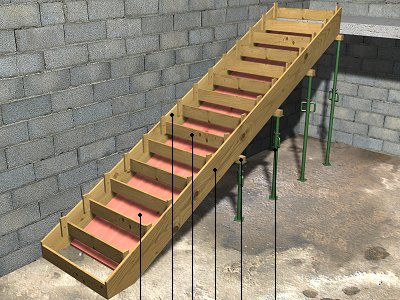 | Sistema de escoramento e fôrmas para laje de escada | ||