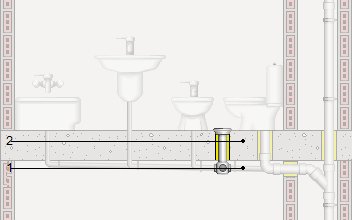 Caixa com sifão de PVC, de 90 mm de diâmetro e 80 mm de altura, com uma entrada de 40 mm de diâmetro e uma saída de 50 mm de diâmetro, com tampa cega de aço inoxidável, colocado superficialmente sob a laje. Inclusive prolongador, líquido de limpeza e adesivo para tubos e acessórios de PVC.