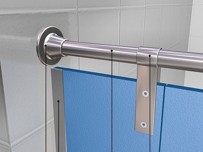 Cabine para vestiário, de 900x1400 mm e 2000 mm de altura, de painel fenólico HPL, de 13 mm de espessura, cor a escolher; composta de: portão de 600x2000 mm e 2 laterais de 2000 mm de altura; estrutura suporte de alumínio anodizado, formada por perfil guia horizontal de seção circular de 25 mm de diâmetro, rosetas, pinças de fixação dos painéis e perfis em U de 20x15 mm para fixação à parede e ferragens de aço inoxidável AISI 316L, formadas por dobradiças com mola, puxador com corrente e indicador exterior de livre e ocupado, e pés reguláveis em altura até 150 mm.