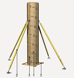 Escora aprumadora metálica, telescópica, com extremidades articuladas, de até 3 m de comprimento.