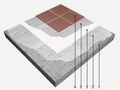 | Dessolidarização sob piso cerâmico ou de pedra natural, com lâminas nodulares de polietileno | ||