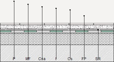 Impermeabilização de varandas e lavandarias, com geotêxtil não tecido composto por fibras de poliéster entrelaçadas, com uma resistência à tração longitudinal de 3,45 kN/m, uma resistência à tração transversal de 3,45 kN/m, uma abertura de cone ao ensaio de perfuração dinâmica segundo ISO 13433 inferior a 15 mm, resistência CBR ao punçoamento 0,8 kN e uma massa superficial de 300 g/m², sobre argamassa de cimento CEM II/B-L 32,5 N tipo M-5, confeccionada em obra com 230 kg/m³ de cimento e uma proporção em volume 1/6, com espessura média de 4 cm e caimento de 1% a 5%, acabamento afagado, lâmina impermeabilizante flexível de PVC-P, (fv), de 1,2 mm de espessura, com armadura de véu de fibra de vidro, e com resistência à intempérie, colocada solta sobre a camada separadora, fixada em sobreposição através de solda termoplástica, e nas bordas soldada a perfis colaminados de chapa e PVC-P e protegida com camada separadora de geotêxtil não tecido composto por fibras de poliéster entrelaçadas, com uma resistência à tração longitudinal de 3,45 kN/m, uma resistência à tração transversal de 3,45 kN/m, uma abertura de cone ao ensaio de perfuração dinâmica segundo ISO 13433 inferior a 15 mm, resistência CBR ao punçoamento 0,8 kN e uma massa superficial de 300 g/m². | ||